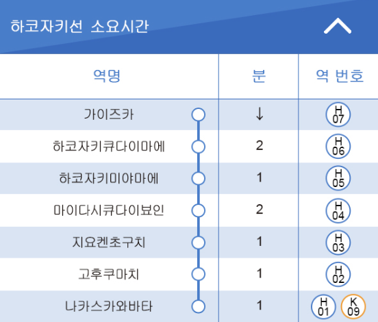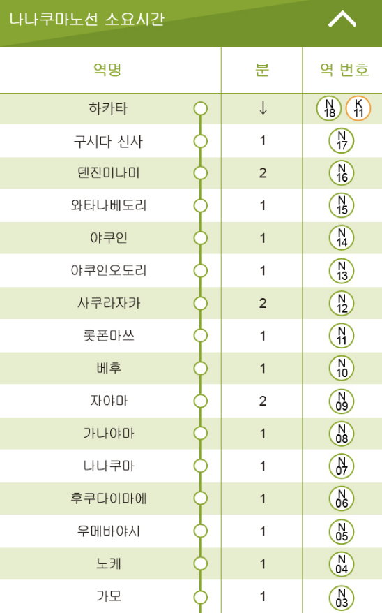 후쿠오카 지하철 전철 소요시간
