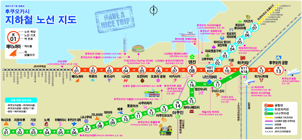 후쿠오카 지하철 이용 시 아래와 같은 정보를 알고 있다면 더욱 효율적인 여행이 될 수 있습니다.